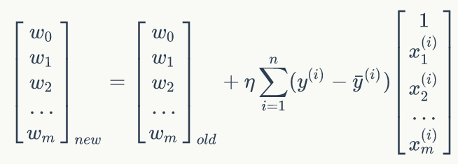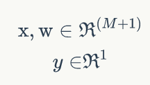 需要说明的是,如果每个样本有M个特征,则上式中的X,w都是M+1维向量(因为我们加上了一个恒为1的虚拟特征x0,参考前面的内容),而y是标量。用高逼格的数学符号表示,就是: