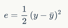 我们把e叫做单个样本的误差。至于为什么前面要乘1/2,是为了后面计算方便。