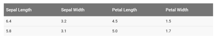 # Classify two new flower samples.new_samples = np.array( [[6.4, 3.2, 4.5, 1.5], [5.8, 3.1, 5.0, 1.7]], dtype=float) y = list(classifier.predict(new_samples, as_iterable=True)) print('Predictions: {}'.format(str(y)))