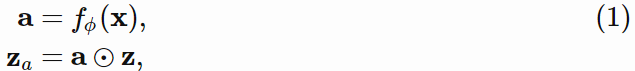 其中 ⊙ 是元素依次相乘。对于软注意(soft attention),其将特征与一个(软)掩模(mask)相乘,该掩模的值在 0 到 1 之间;对于硬注意(hard attention),这些值被限制为确定的 0 或 1,即 a∈{0,1}k。在后面的案例中,我们可以使用硬注意掩模来直接索引其特征向量