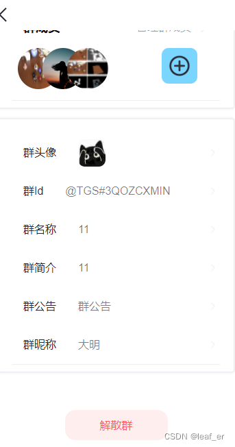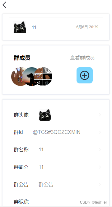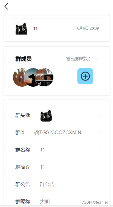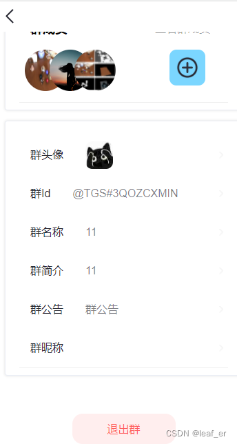 参考了用户详情,并考虑到群组的不同,在增加群名、成员列表展示列。并为相应部分添加修改功能(管理群成员、邀请、修改资料等)。
