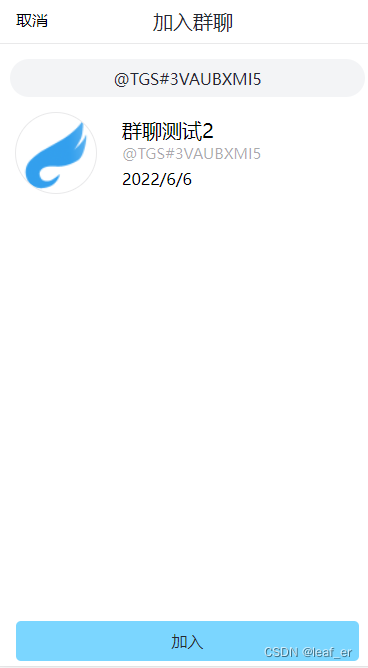 通过修改创建群聊界面下方样式,当输入的ID能够查找到相应群聊时,能够展示消息信息,