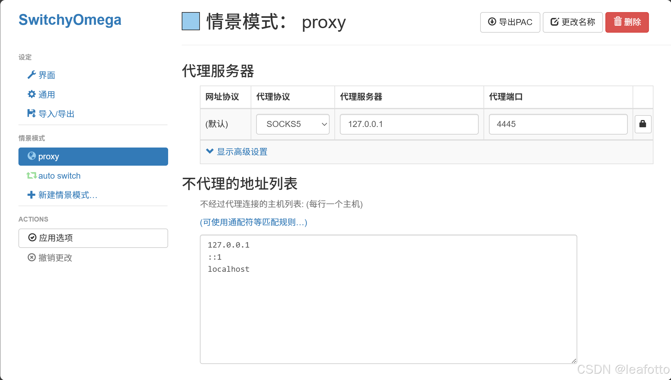 浏览器安装扩展SwitchyOmega,配置一个proxy。