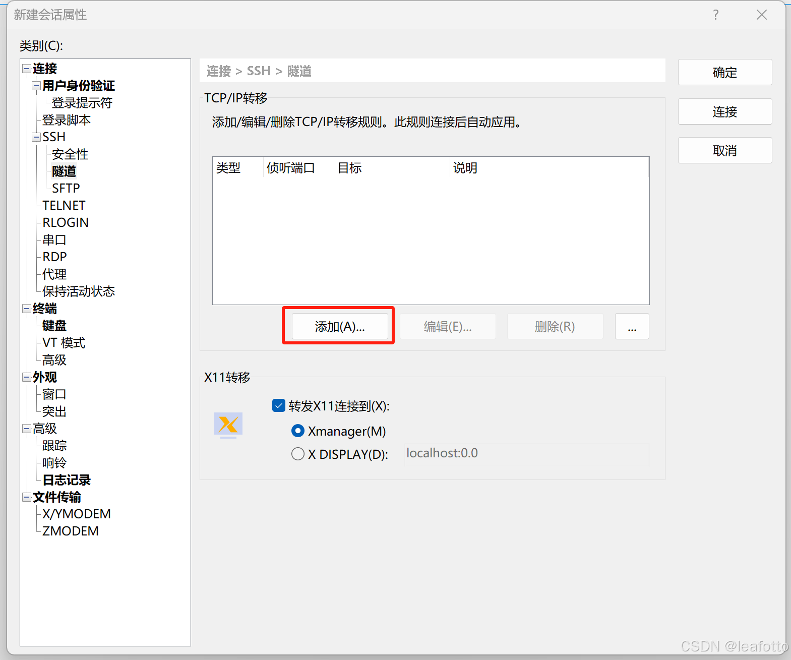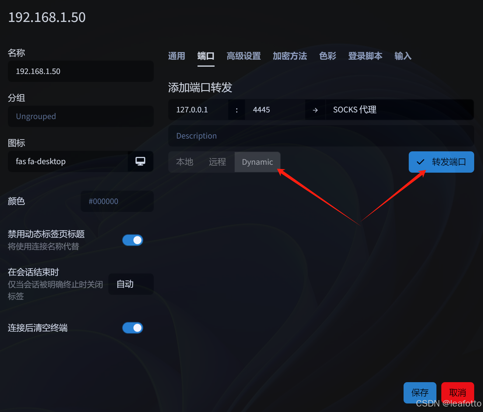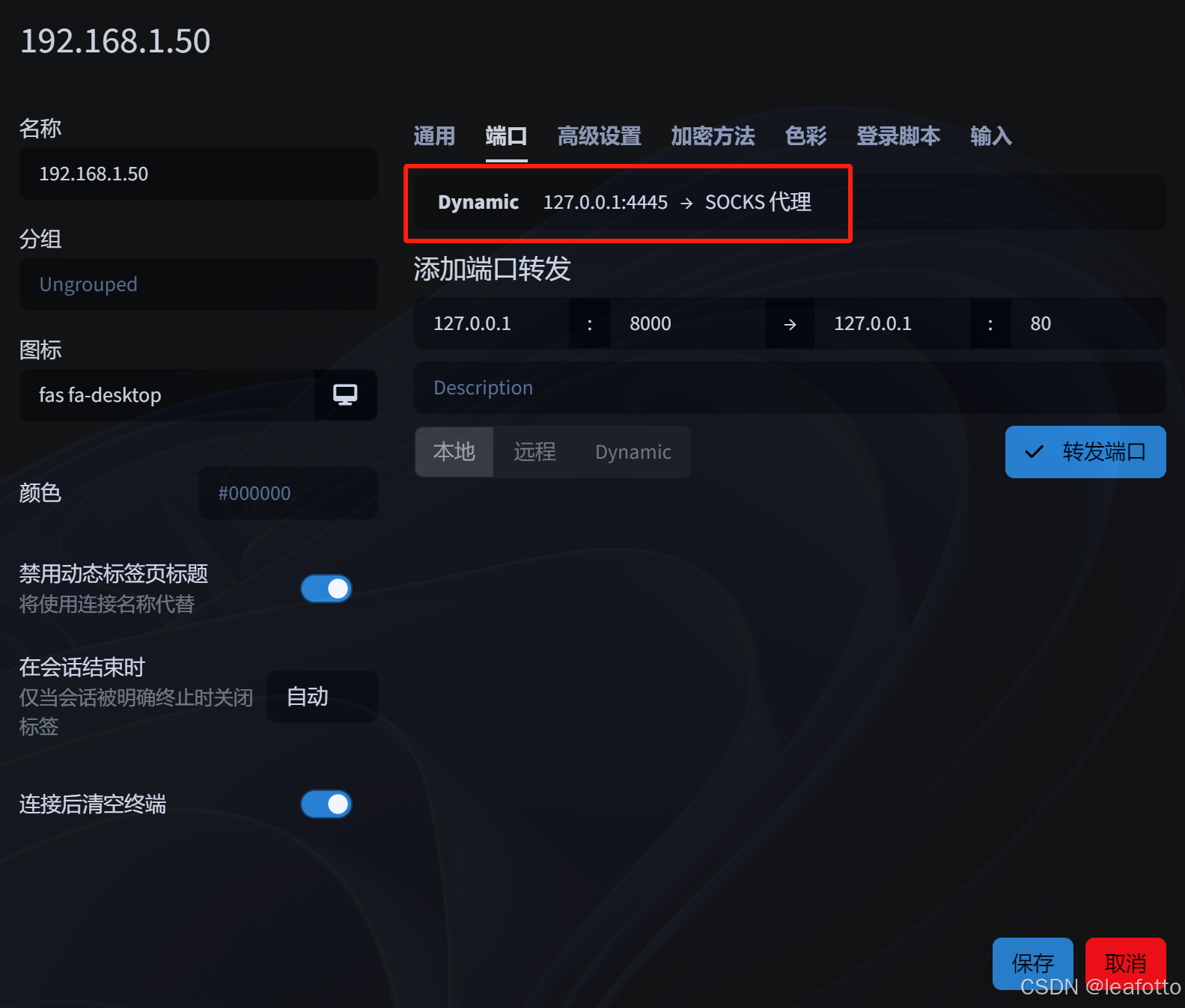 tabby(创建或修改ssh配置时在端口页签进行配置)