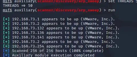 use auxiliary/scanner/discovery/arp_sweep