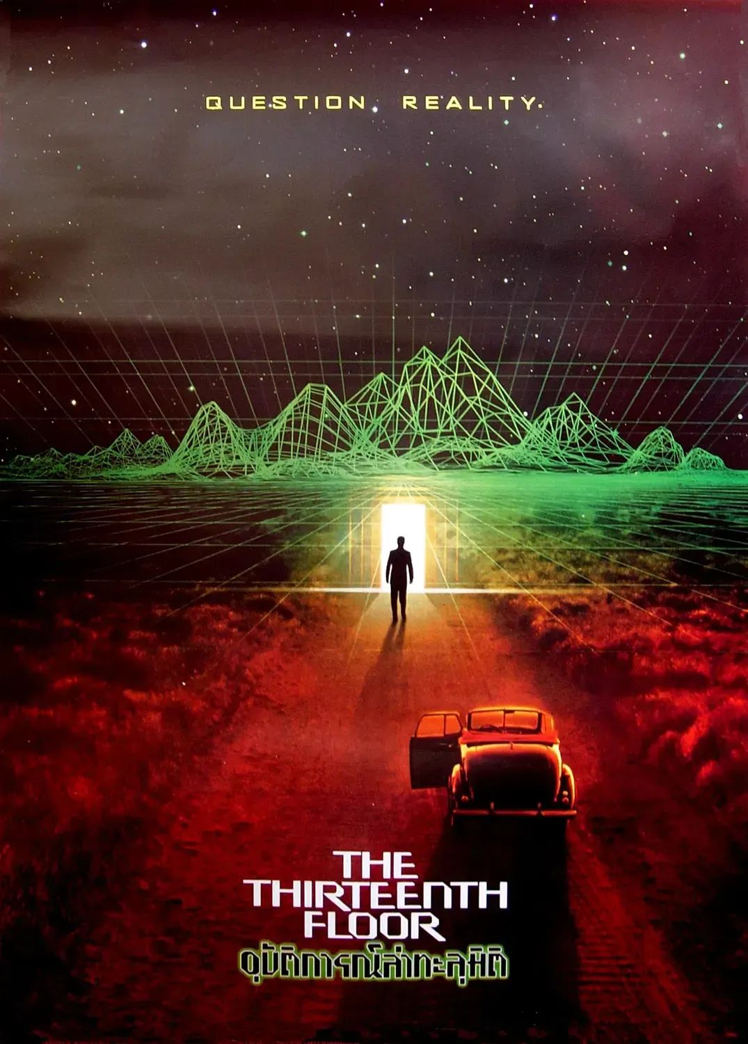 该片剧情脑洞大开:在一座大厦的第十三层,计算机高手道格拉斯·霍尔和汉农·富勒,用电脑模拟出逼真的1937年的洛杉矶,他们可以通过电脑进入这个虚拟世界。然而富勒突然离奇死亡,霍尔进入多重虚拟空间查明真相。