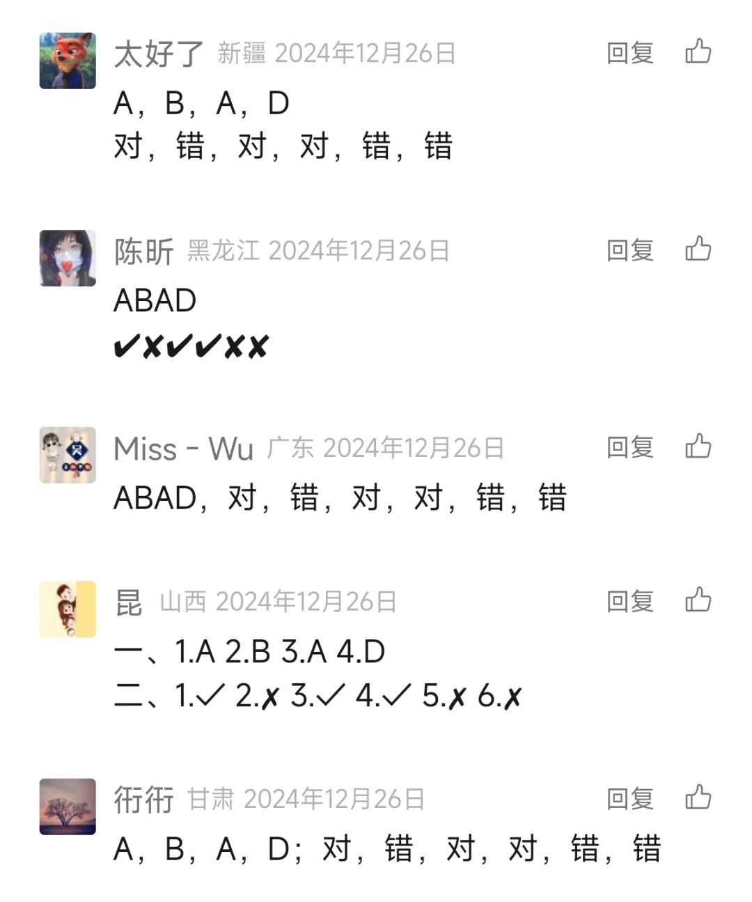 上周新法知识期末考试(四)的正确答案和获奖名单。