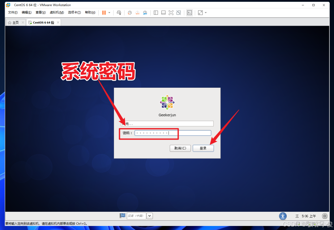 系统超级管理员默认账户名称为root, 密码就是我们之前设置的系统密码!