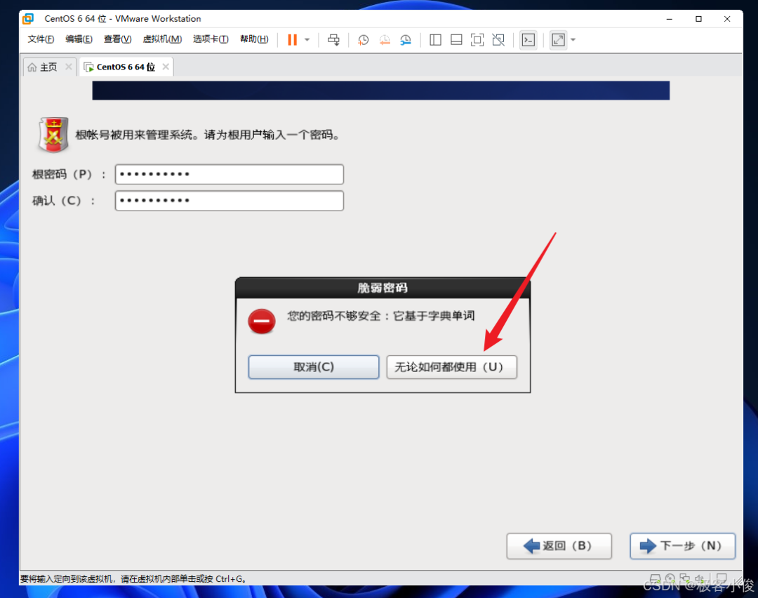 这里我们要给系统设置一个密码,最好设置强度大一点