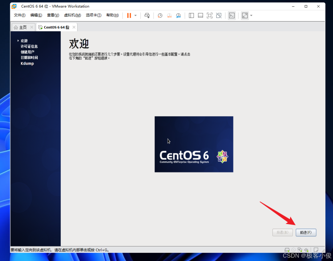 然后来到CentOS安装欢迎画面, 点击Next(下一步)继续!