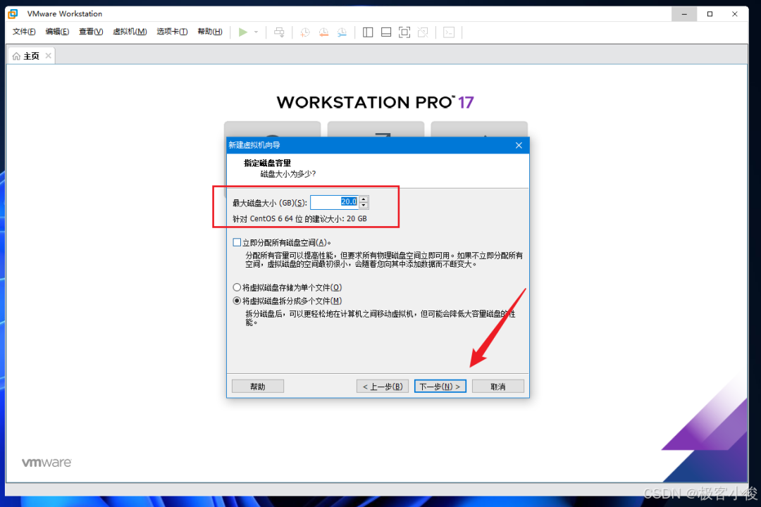 这里我们也分配20GB的磁盘空间, 当然这里并不是你分配了20GB 就一定会占用这么多!