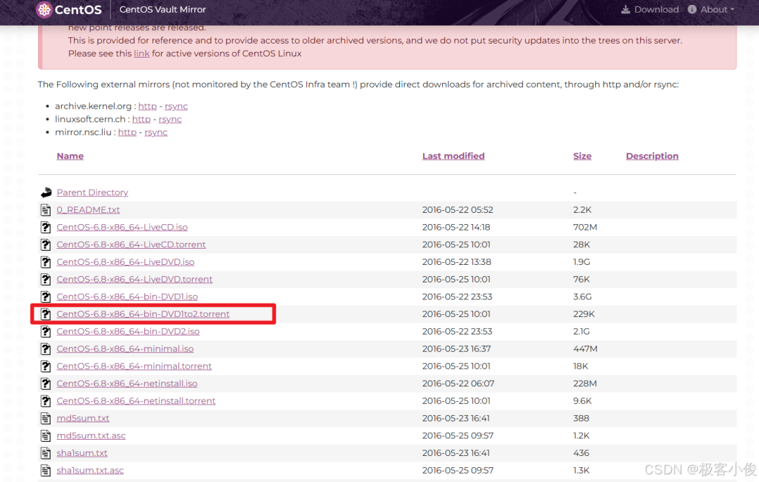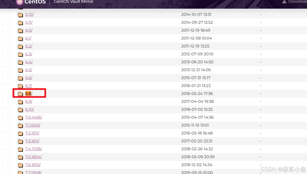 然后是下载CentOS镜像, 这里我以下载CentOS6.8为例, 其他版本大家按照方法自行下载即可!