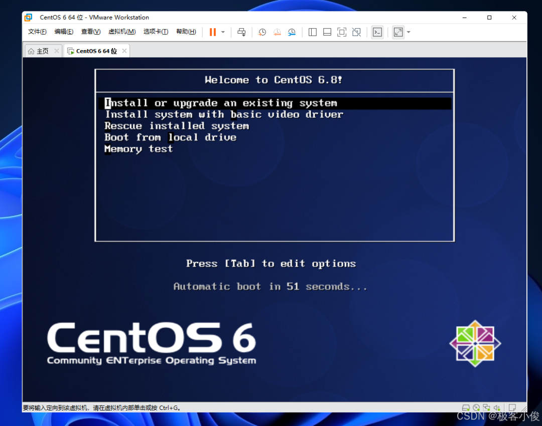 稍等一会,画面会正式来到CentOS安装的画面,直接回车即可