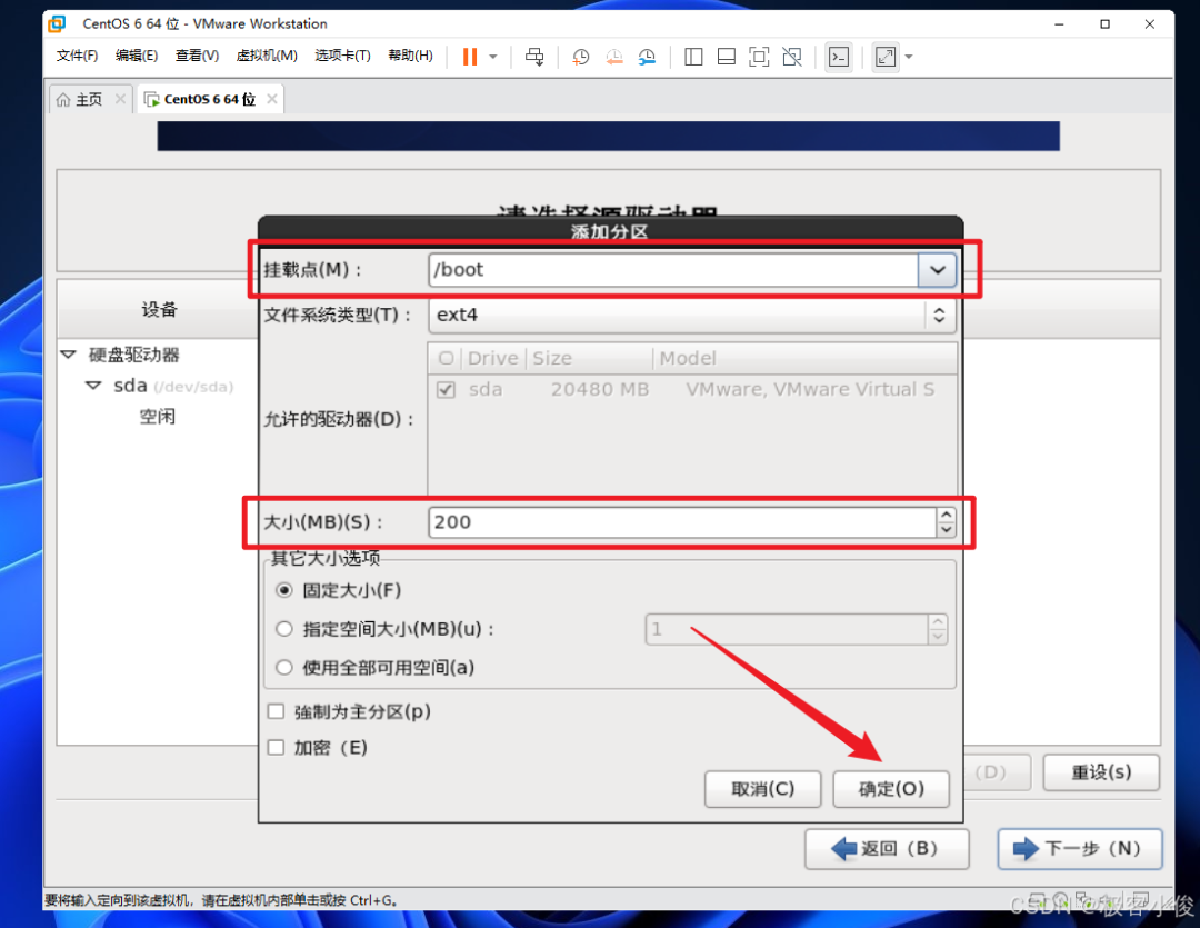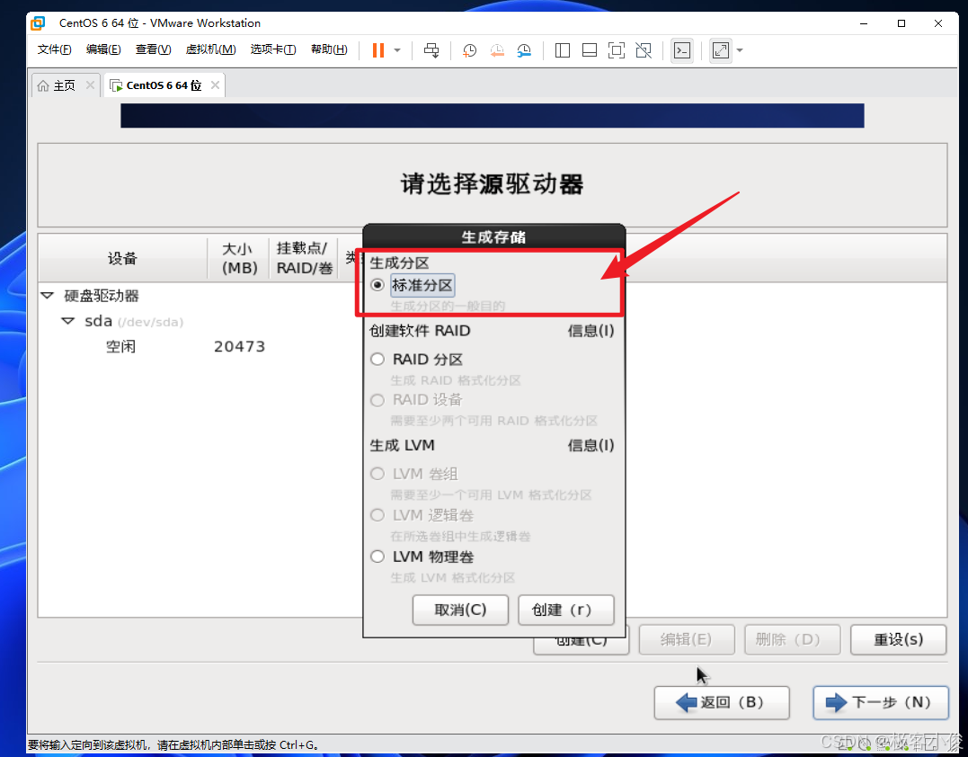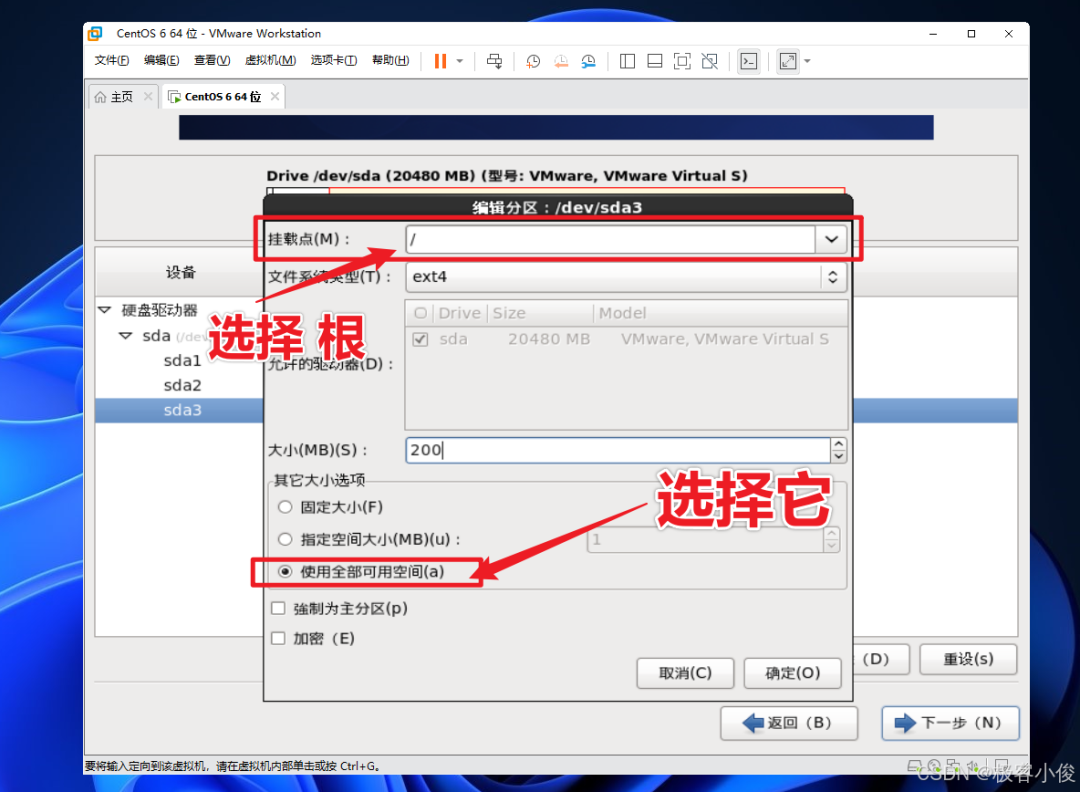然后再次创建选择标准分区, 把剩余的空间全部应用在最后一个分区上!