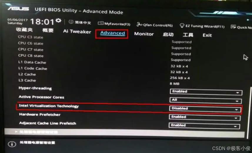然后主要是找到BIOS中的Intel VT-x开启即可!