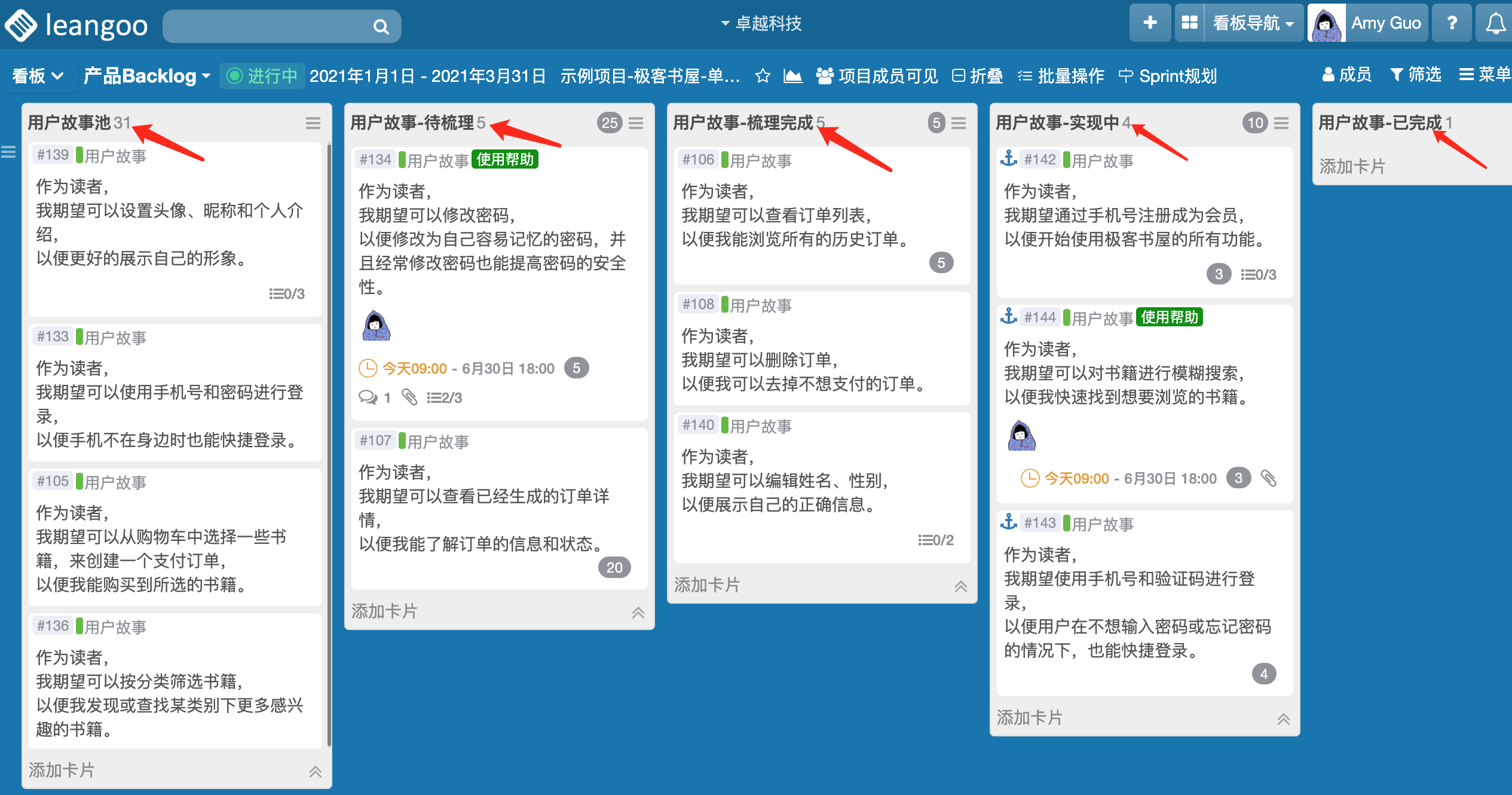 每个迭代开始前,我们需要将已梳理完成且优先级最高的用户故事规划到迭代看板内,以便准备迭代中需要完成的内容。