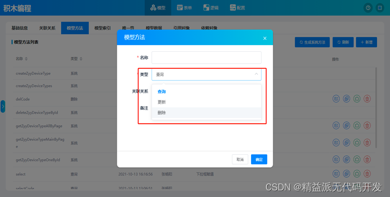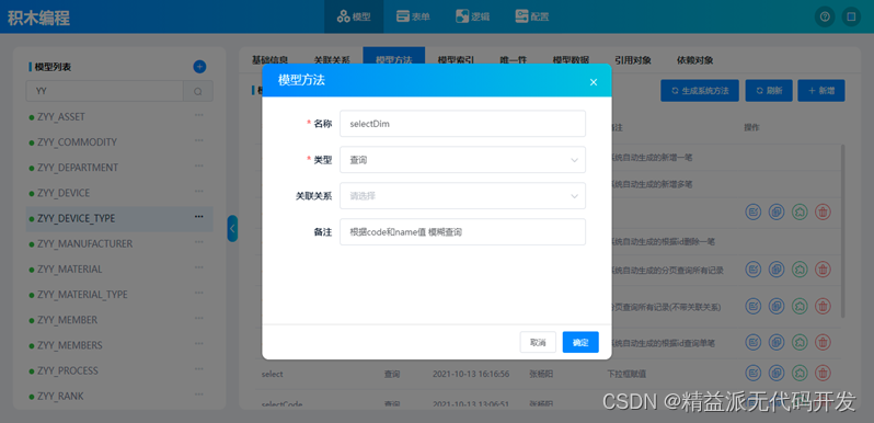 本文介绍了无代码开发中如何处理设备台账管理的表单方法,强调了表单的增删改查依赖于模型方法。详细讲解了编辑模型查询方法的步骤,包括自动生成系统方法、新增自定义方法以及编辑方法中的SQL逻辑,特别是如何设计逻辑方法、设置过滤条件和外部排序。文章以实例展示了如何操作和配置,以便实现前端页面的条件模糊查询和数据分页显示。