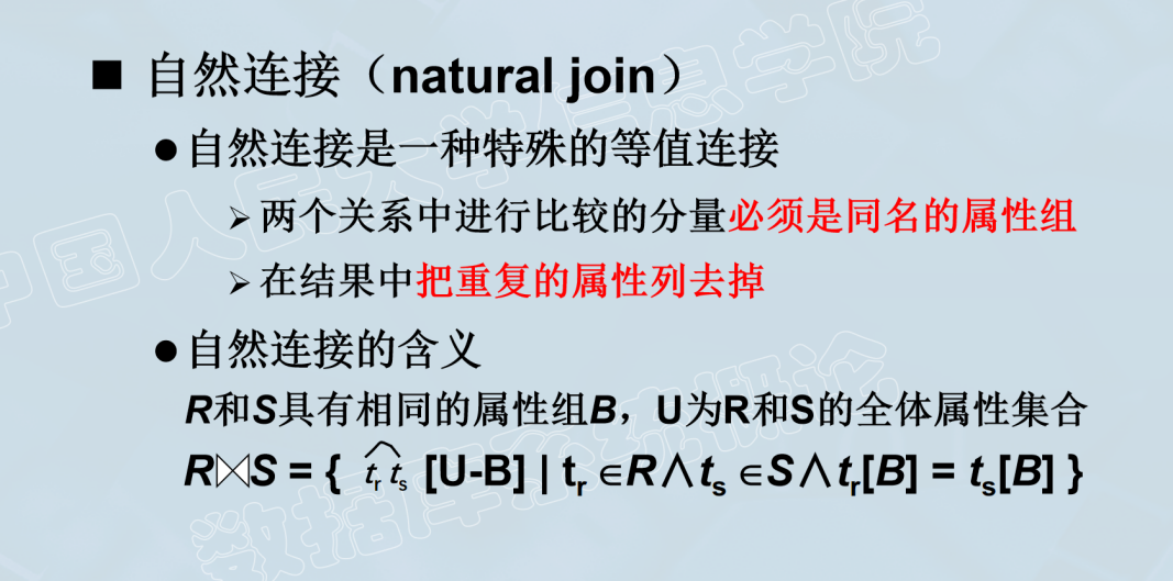 至于自然连接,只需要再利用投影即可