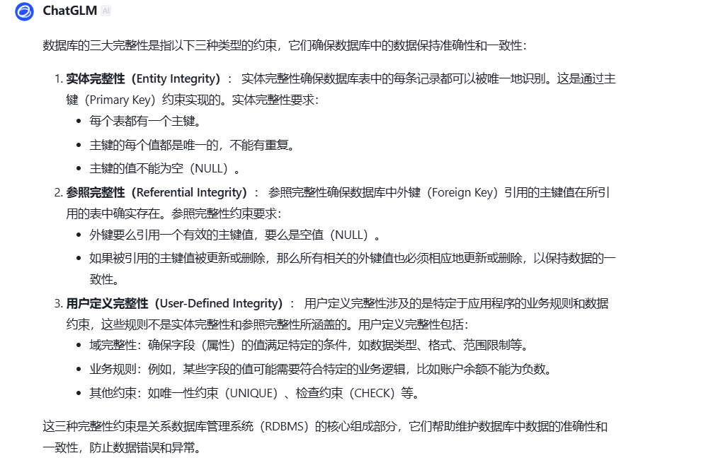 完整性约束是数据库设计的重要组成部分,它们帮助维护数据库的一致性和可靠性,防止数据错误和不一致。