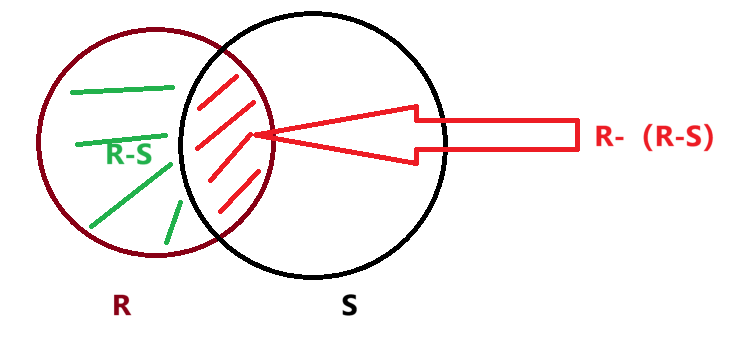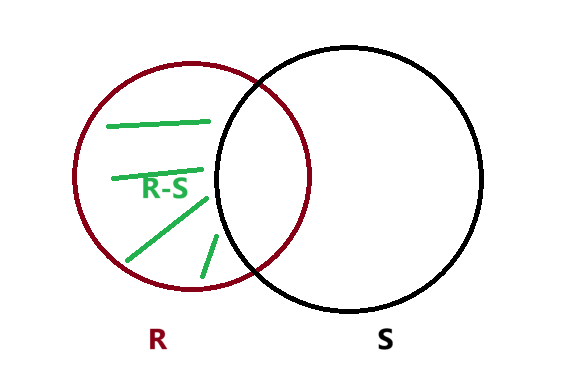 计算R与S的差集(R - S)。