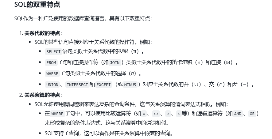 具有关系代数和关系演算双重特点的语言 例如SQL