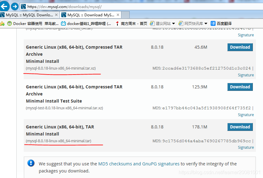 1,在mysql官网,如下地址,下载安装包,最后那个tar包解压后,有三个包,其中一个是上面红笔画的那个包,所以可以直接下载上面那个包。
