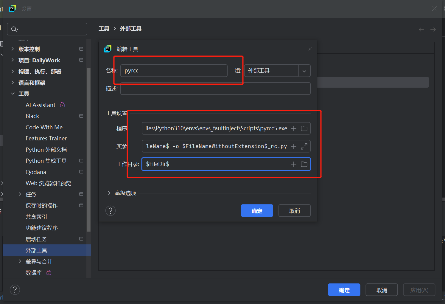 填写虚拟环境下Scripts下方的pyrcc5.exe