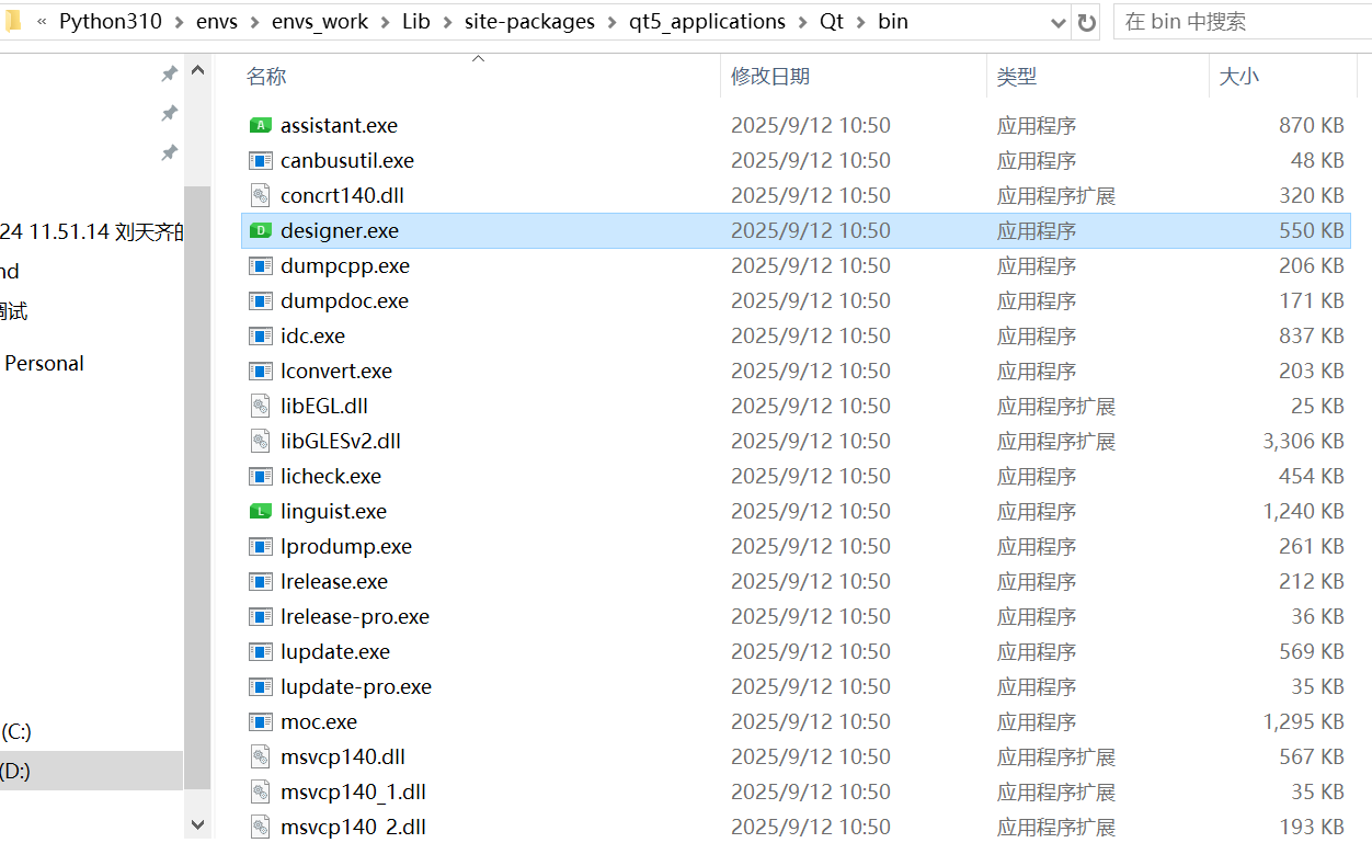 路径在虚拟环境 Lib\site-packages\qt5_applications\Qt\bin 文件夹下