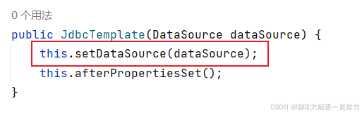 可以看到JdbcTemplate的有参构造方法中,是通过set方法注入的dataSource属性