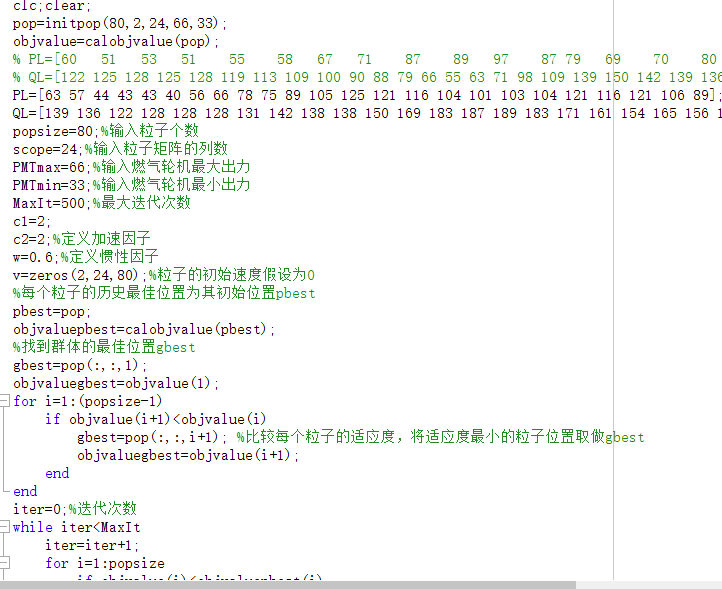 popsize:粒子数量(80)size:粒子维度(2)scope:时间范围(24小时)PMTmax、PMTmin:燃气轮机出力上下限