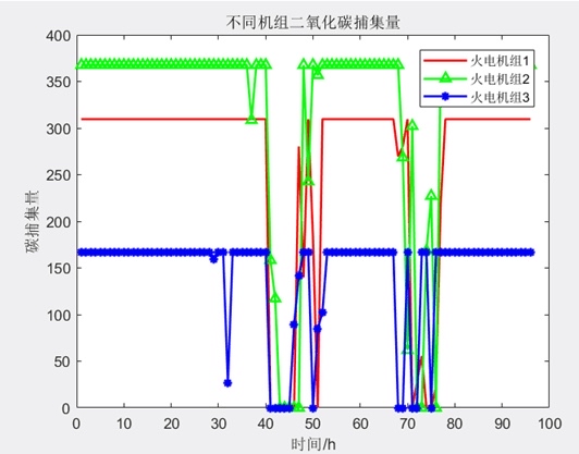 - 二氧化碳捕集量图:各机组分时段捕集量