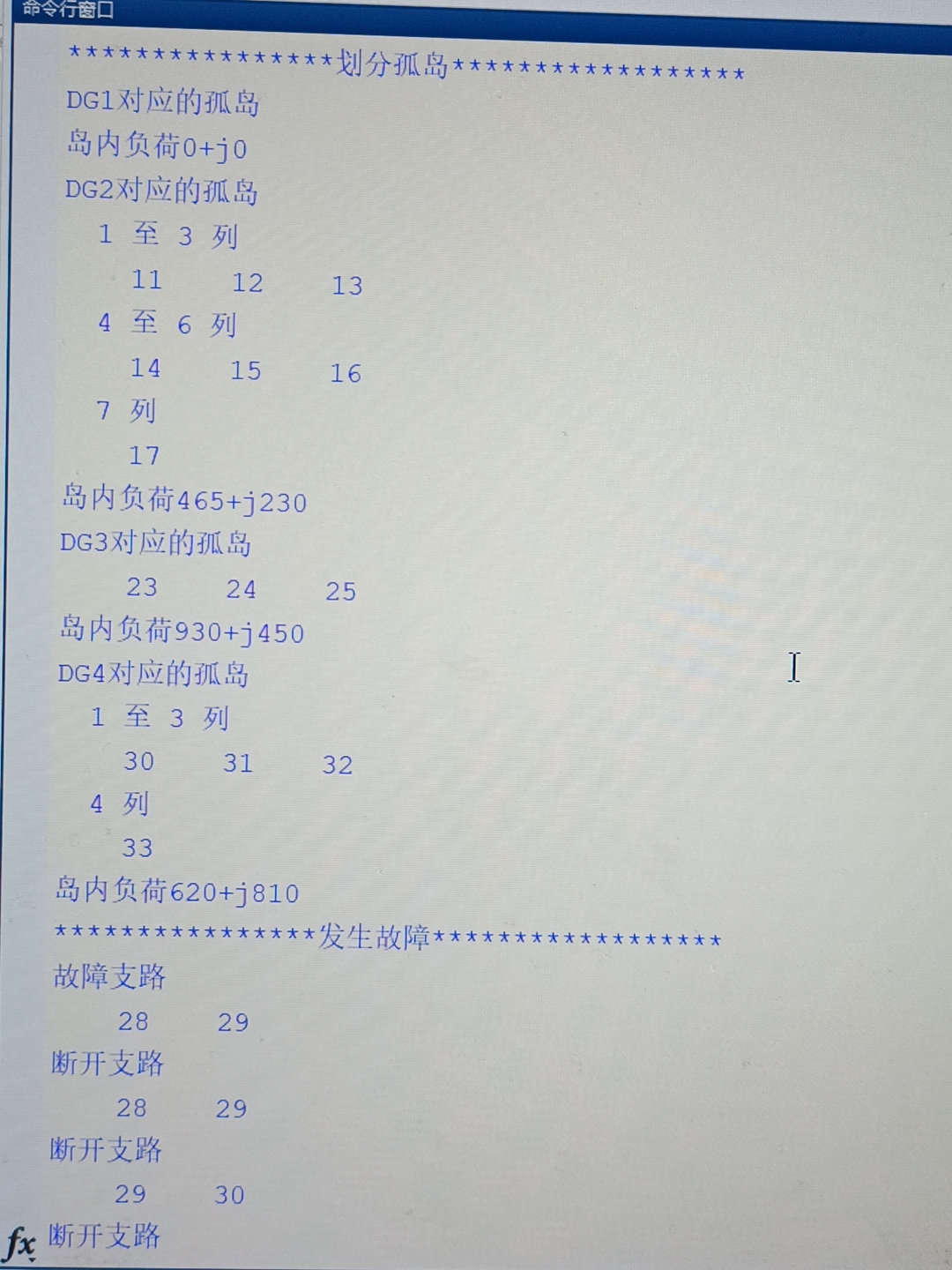 island向量:0 表示非孤岛,>0 表示所属 DG 编号; - 输出孤岛功率平衡表,供调度员确认。