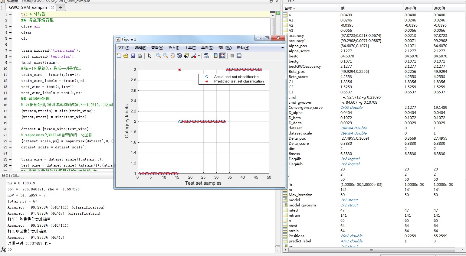 注:耗时与 libsvm 版本、CPU 单核性能强相关;GWO 本身为纯 MATLAB 实现,未做 MEX 加速,可自行改写关键循环进一步提速。