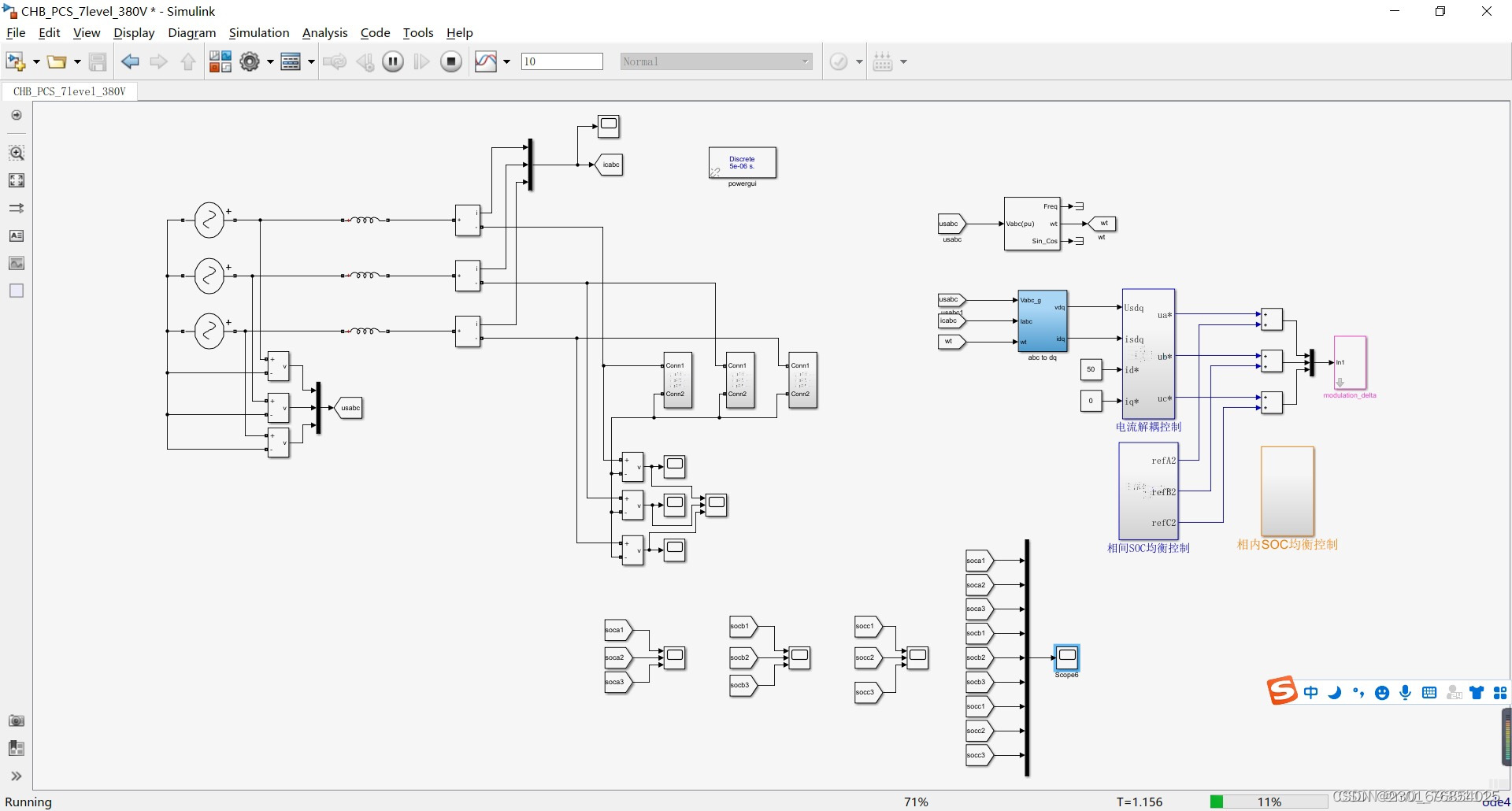 级联H桥储能系统研究与设计 soc均衡控制,相内soc均衡,相间soc均衡,蓄电池充放电控制 级联h桥储能 级联H桥,dq坐标系下的pi解耦控制,有参考论文,控制方法走论文