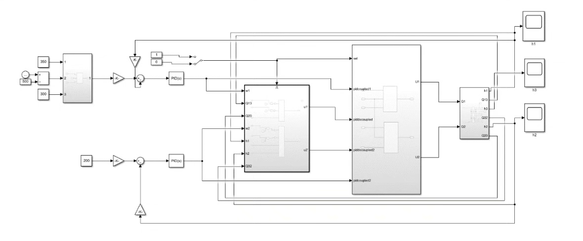 这样,我们就在Simulink中初步构建了三容水箱的动态模型。