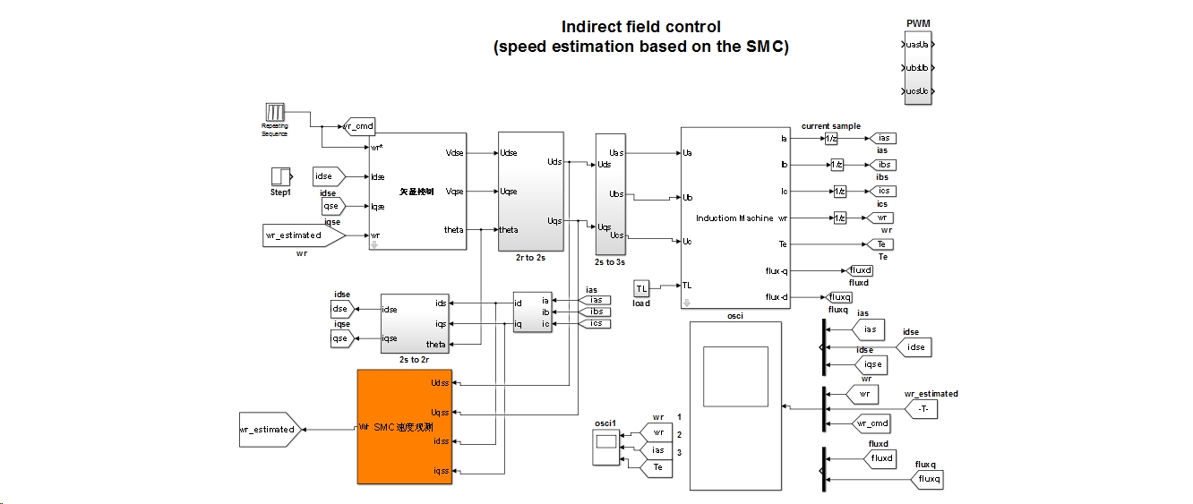 基于SMO滑模观测器的异步电机无传感器矢量控制,matlab,仿真模型。