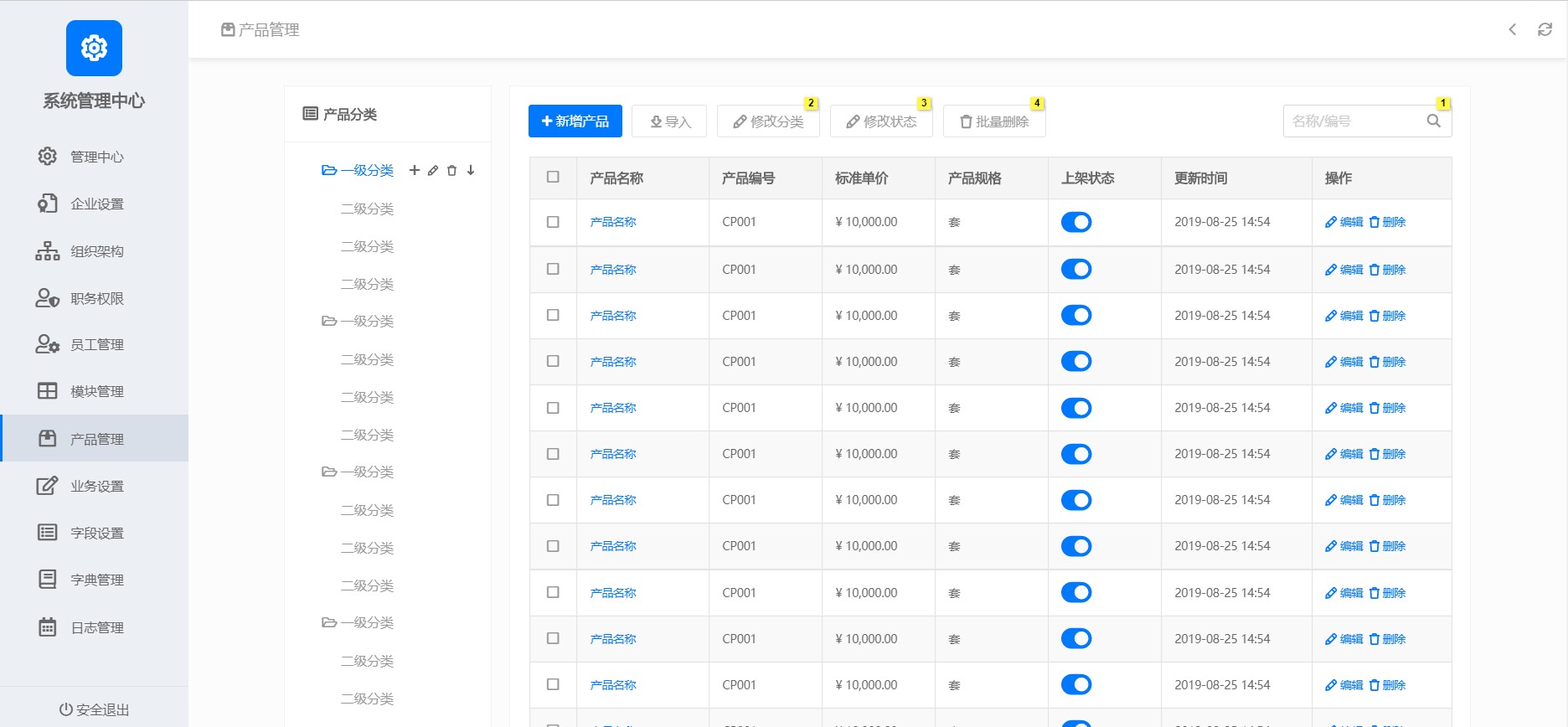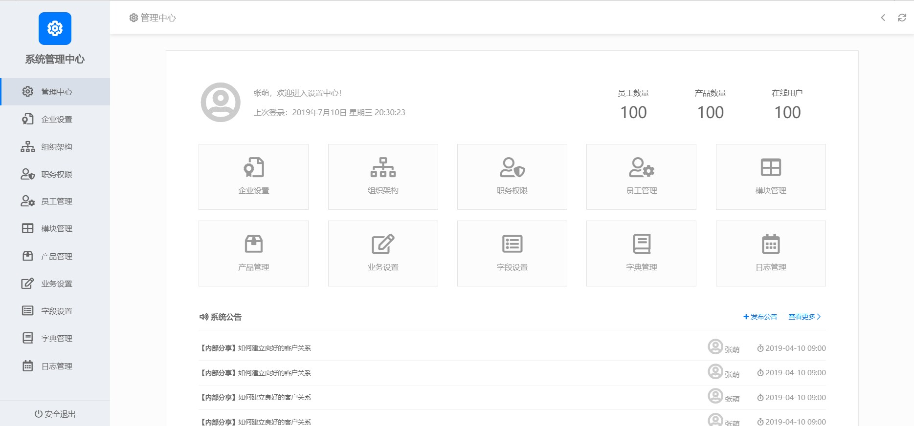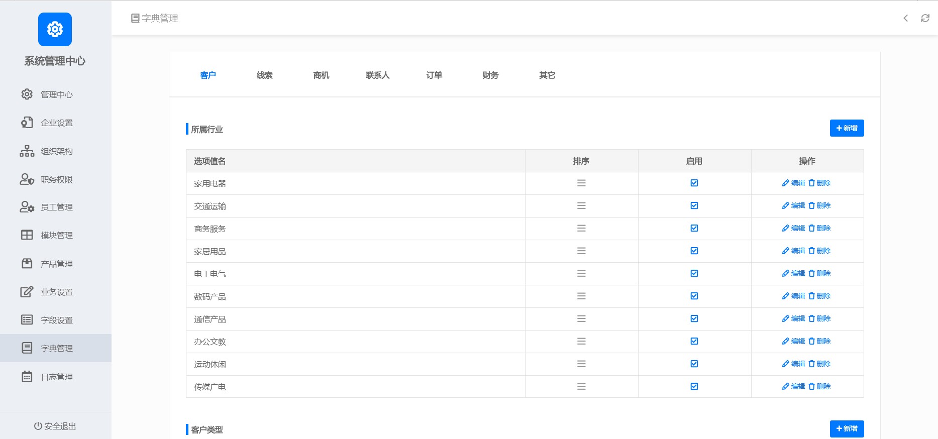 产品管理模块对于以产品为核心的 CRM 系统至关重要,能对产品的各类信息进行管理。业务设置可以根据企业自身业务特点进行定制化设置,字段设置则是针对不同数据字段的规则设定,字典管理用于维护系统中的一些固定数据字典,日志管理记录系统操作日志,方便追溯和排查问题。