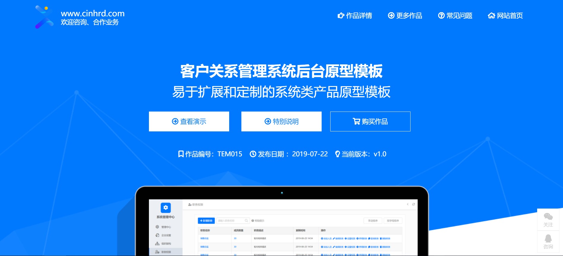 总之,无论是从研究学习角度,还是办公实际使用价值来看,这个 CRM 后台原型模板都值得入手深入研究一番。