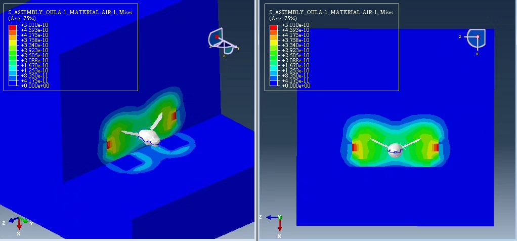 通过 ABAQUS 的计算求解,我们能得到翅膀在空气和水中运动时的各种数据,比如翅膀的应力分布、速度变化以及周围流体的压力场等。从应力分布结果来看,当翅膀从空气进入水中瞬间,由于水的密度较大,翅膀根部会承受较大的应力,这与我们的实际认知相符,因为翅膀需要更大的力来在水中产生与在空气中类似的运动。