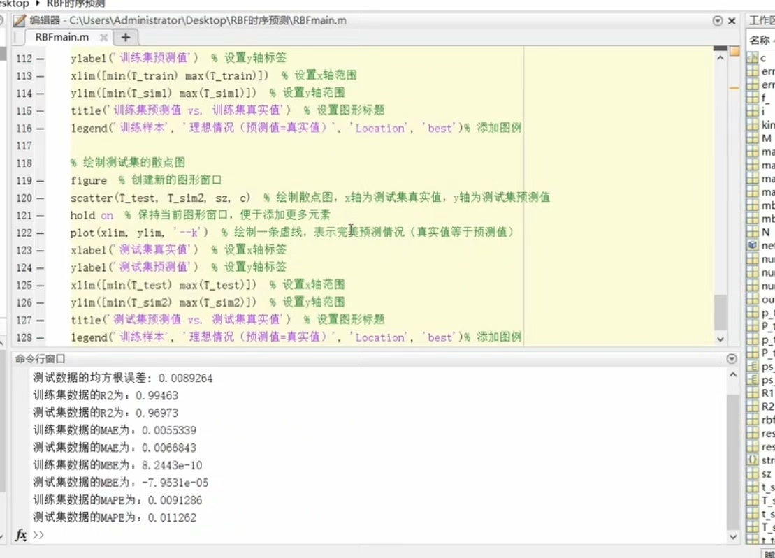 最近在折腾时间序列预测的活,发现RBF神经网络挺有意思的尤其适合处理非线性数据。刚好手头有个MATLAB实现的案例,带大家看看怎么用这个工具包实现时序预测,顺便聊聊代码里藏着的门道。