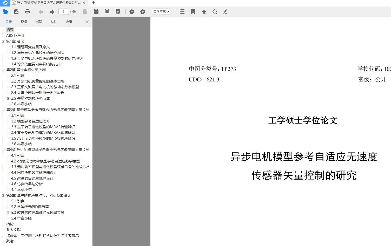 参考模型在整个系统里起着很关键的作用,它为系统提供了一个参考标准。模型参考自适应MRAS法就是通过比较参考模型和可调模型的输出来估计电机的转速。这种方法可以有效地克服电机参数变化等不确定性因素对系统的影响。