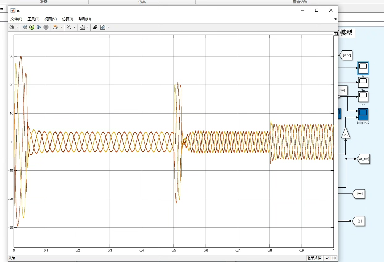 这个模型的模块划分很清晰,使用起来非常方便。我们可以根据自己的需求设置不同的负载Tm以及不同的转速参考值。这样就可以模拟不同的实际工况,对模型的性能进行全面的测试。