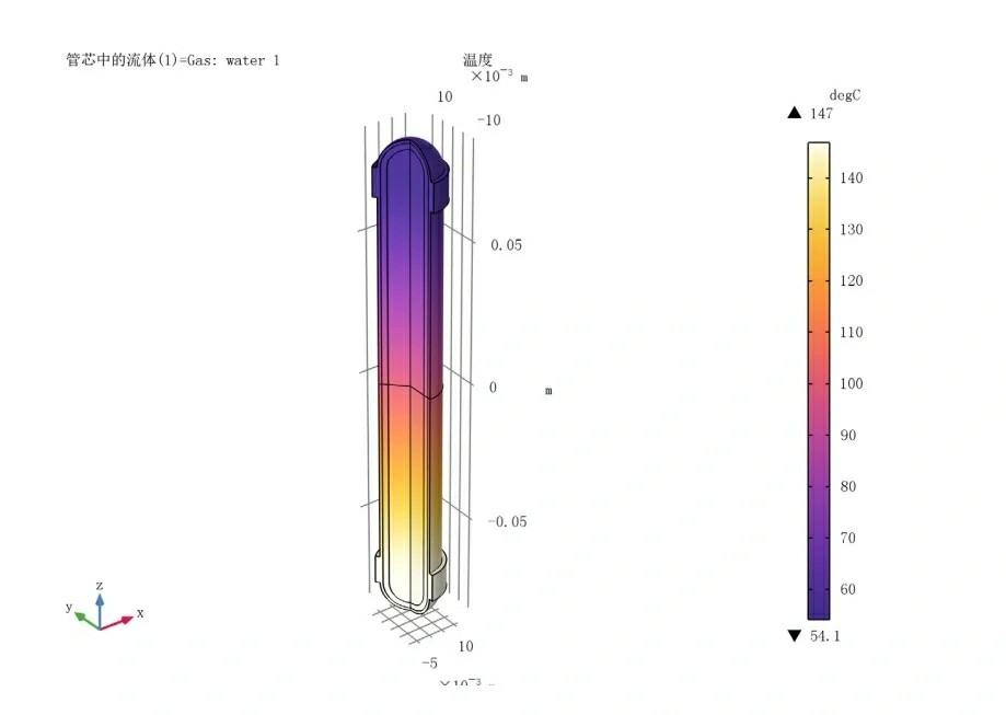 - 比较蒸汽输送和管壁传导:最后,我们可以通过模拟结果来比较蒸汽输送和管壁传导的重要性。通常,蒸汽输送的效率比管壁传导高出几个数量级,这也是热管能够高效传递热量的原因之一。