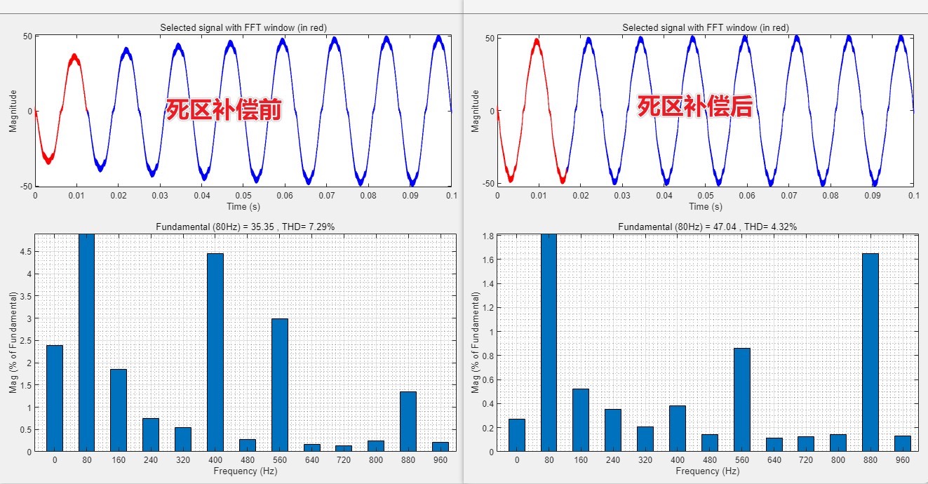 不过,聪明的工程师们找到了应对之策,那就是通过对空间矢量脉宽调制(SVPWM)控制进行补偿,以此有效削弱死区带来的负面影响。就好比给这个“舞者”穿上了一双合适的舞鞋,让它能够重新找回节奏。
