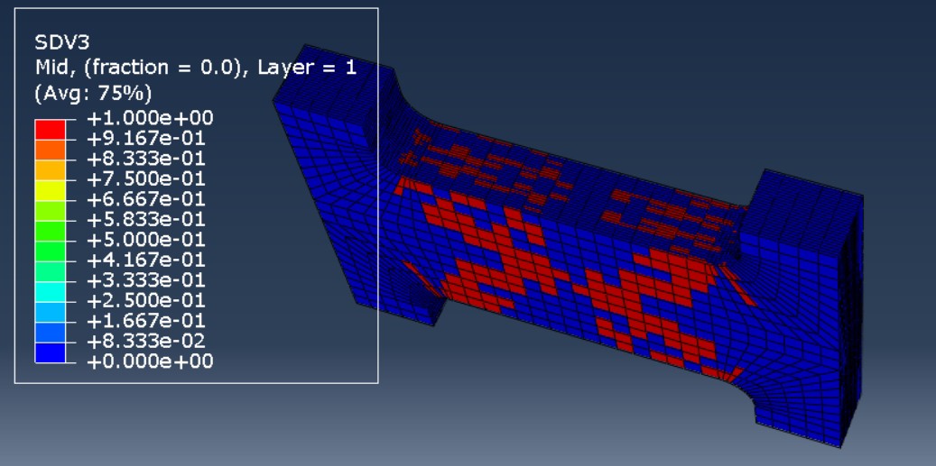 不过Hashin也不是没有坑。调试子程序时最头疼的是模式切换点的数值震荡,特别是在拉伸/压缩状态转换的临界区域。后来在材料刚度退化率里加了个平滑过渡函数才搞定: