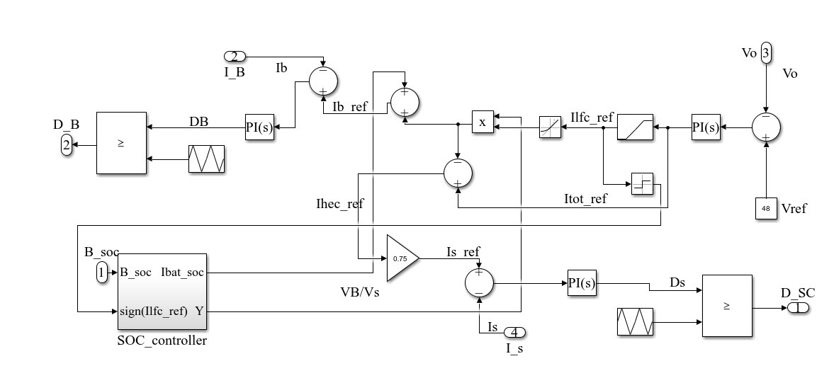 // 假设系统中有光伏功率Ppv,负载功率Pl,蓄电池功率Pb,超级电容功率Pc