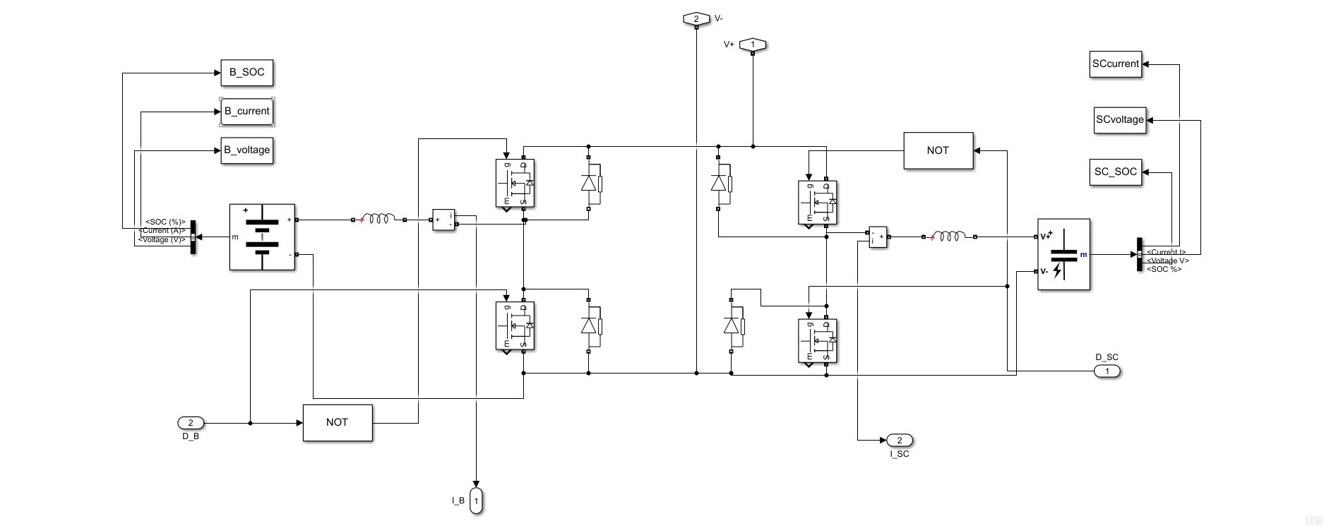 在这段代码中,我们根据光伏功率Ppv和负载功率Pl的大小关系,以及蓄电池的荷电状态SOC来分配功率。当光伏功率大于负载功率时,如果蓄电池荷电状态小于上限SOC_MAX,则优先给蓄电池充电,超级电容不工作;反之则超级电容充电。当光伏功率小于负载功率时,同样根据蓄电池荷电状态来决定是蓄电池还是超级电容放电来补充功率。