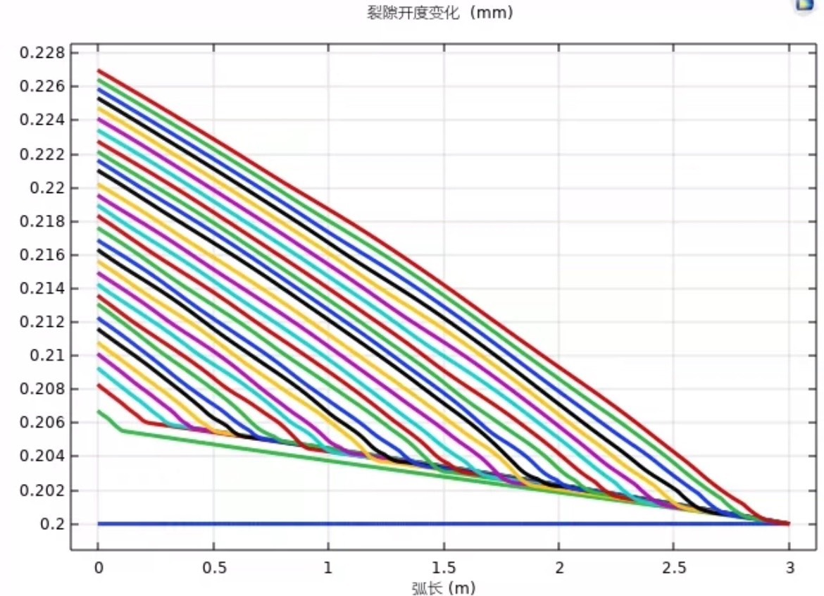 对于裂隙变形,我们可以绘制位移云图,类似地设置绘图对象和选择位移变量,就可以看到土体在浆液注入过程中的变形情况。