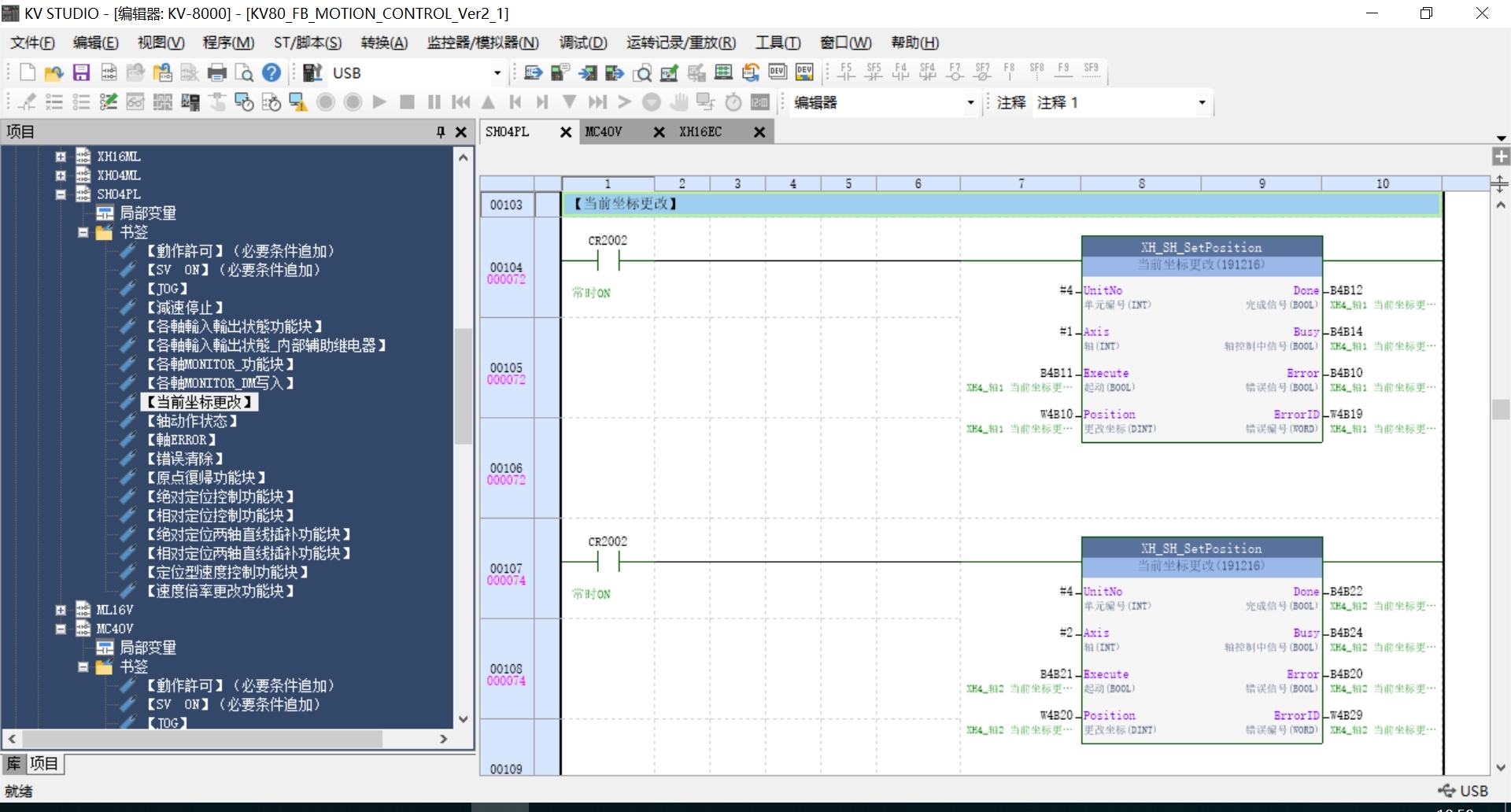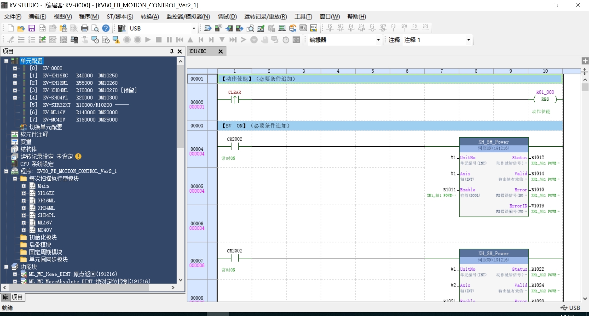 这套模板最狠的是适配了5种定位单元,像KV-XH16ML这种16轴模块直接甩个H_MultiAxisCtrl就搞定。举个栗子,要调用绝对定位功能: