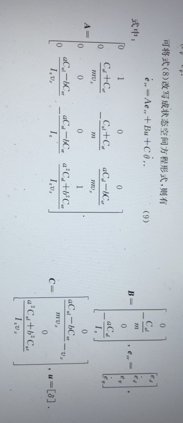 u合理分配到前后轮的转向角度上,同时状态空间方程和动力学模型都要做相应的更复杂的调整。